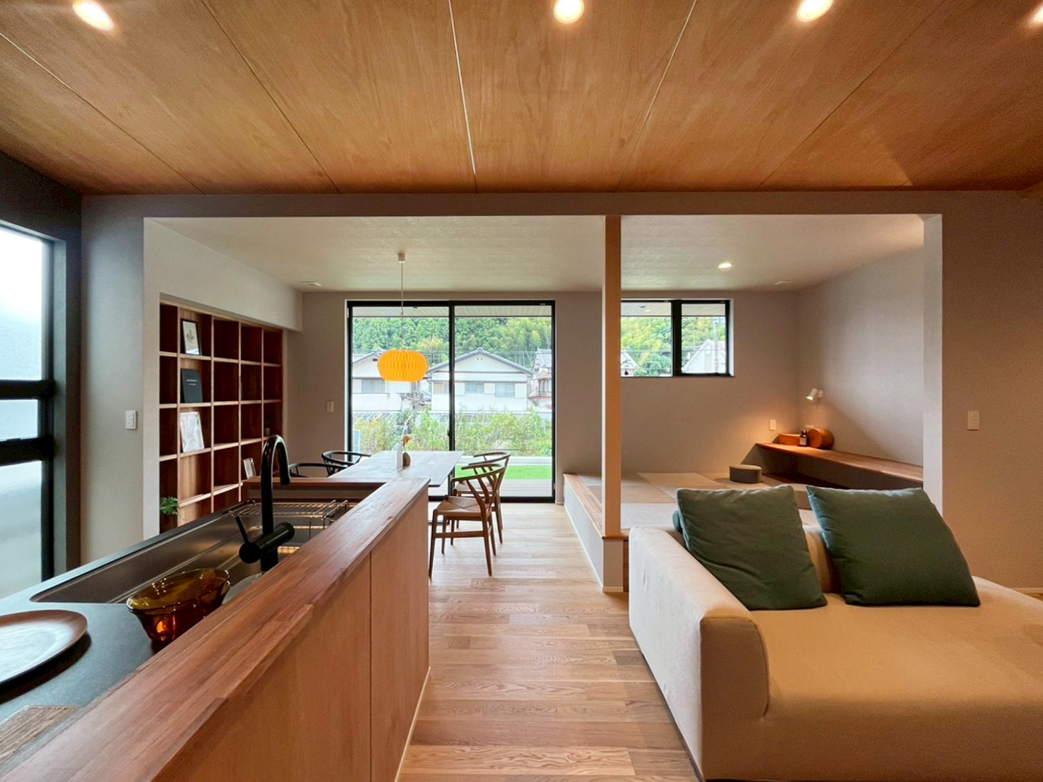 外からの視線を気にせず過ごせる立地に、暮らしに合わせた動線設計と、素材感を楽しめる内装を取り入れた住まいを実現。