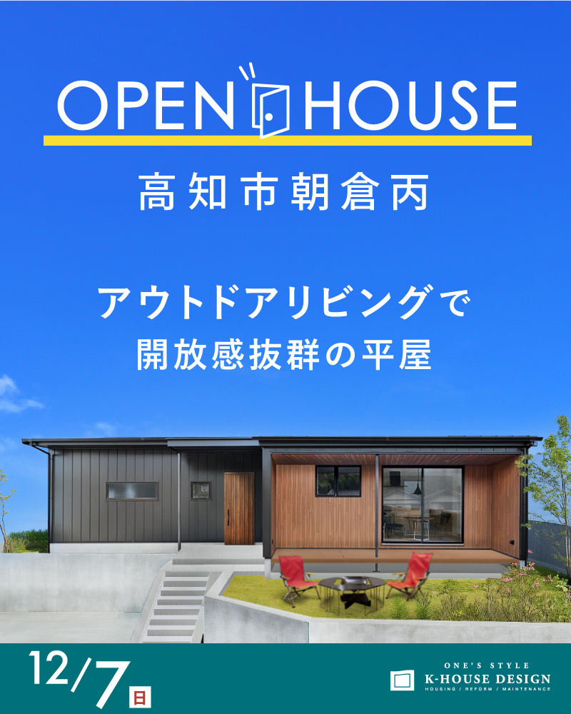 | 見学会タイトル | 高知市朝倉丙 見学会 「アウトドアリビングで 開放感抜群の平屋」 |