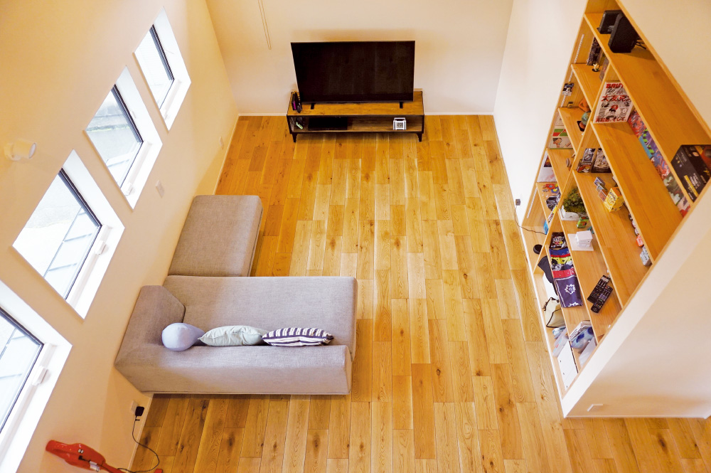 住宅密集地に建つK様邸は二階リビングを採用することで、光や風は取り入れつつ、周りの視線を気にすることなくリラックスして毎日をお過ごしいただけます。